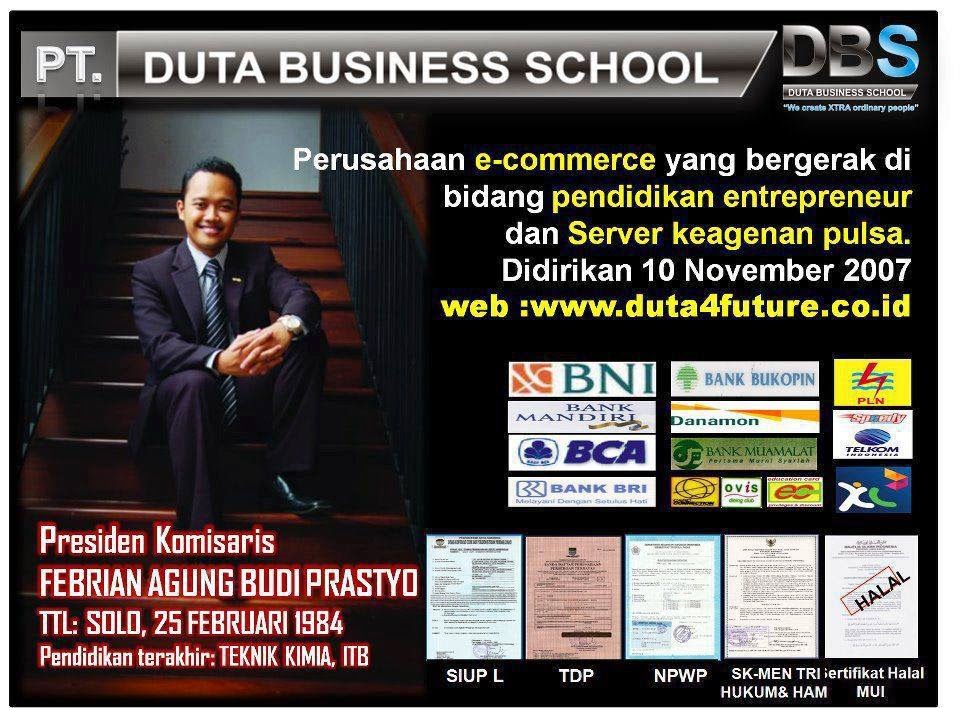 DBS atau Duta BusinessSchool adalah MLM Pulsa paling fenomenal pada massa itu. Nama perusahaannya adalah DutaFor Future. Pertumbuhan membernya luar biasa cepat. di masa-masa puncak kejayaannya, pernah terjadi angka pertumbuhan 10.000 member per hari!